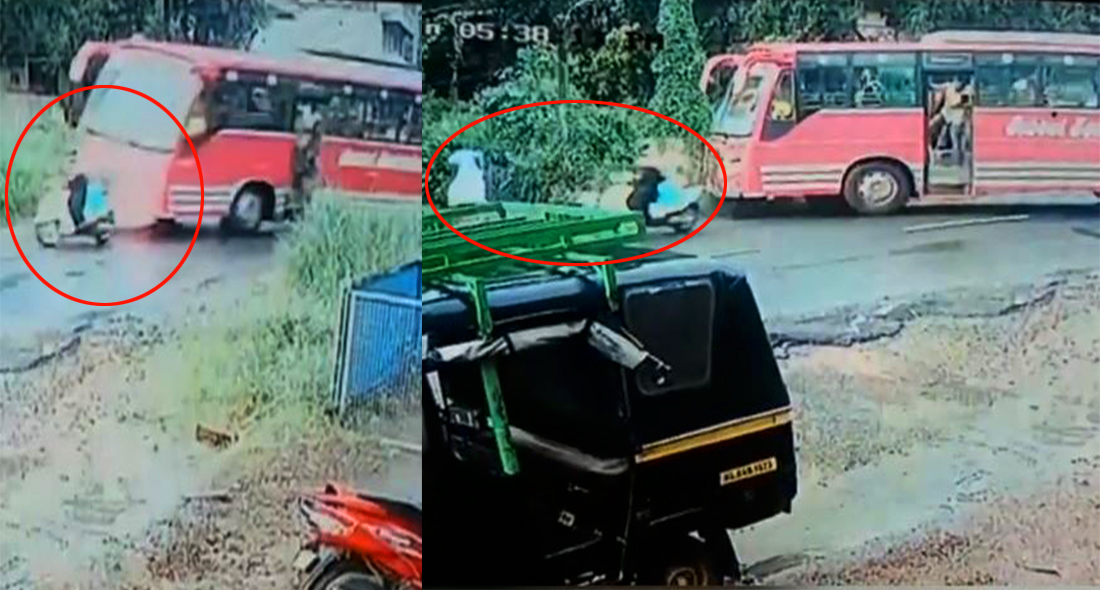 Private Bus Driver tried to save Scooter Riders; Video Viral