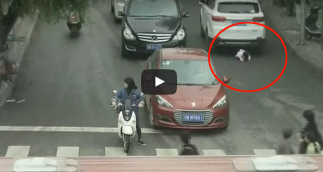 A 2-year-old toddler in China received just minor bruises after she was run over by two cars.