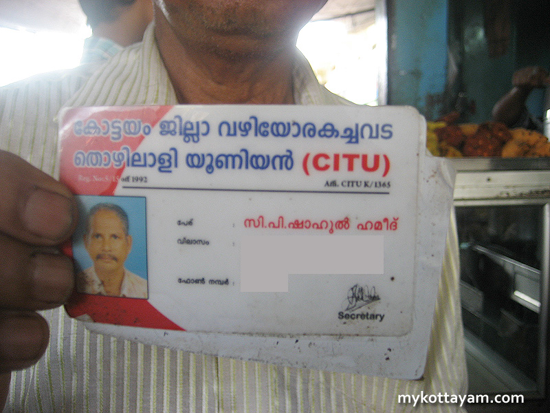Formal membership in CITU (trade union) is compulsory for all kinds of trading at Kottayam private bus stand. The usual business hours of vending in buses is from 9 AM to 5 PM. While Mr Shahul Hameed works on Tuesdays and one or two other days during the week for deteriorated health reasons, Mr Raja manages to work almost every day.