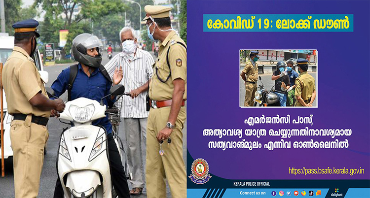 കോവിഡ് 19 നെ തുടര്ന്നുള്ള നിയന്ത്രണങ്ങളുടെ പശ്ചാത്തലത്തില് പൊതുജനങ്ങള്ക്ക് അത്യാവശ്യ സാഹചര്യത്തില് യാത്ര ചെയ്യുന്നതിനാവശ്യമായ സത്യവാങ്മൂലം, വെഹിക്കിള് പാസ് എന്നിവ ലഭിക്കുന്നതിന് ഓണ്ലൈന് സംവിധാനം സജ്ജമായിട്ടുണ്ട്.