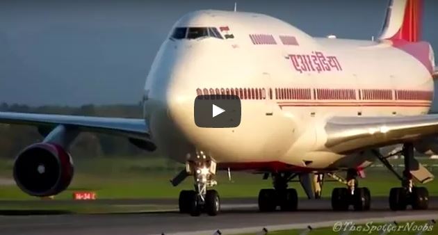 An Air India flight with former Indian President Prathibha Pateel landing at Salzburg International Airport, Austria.