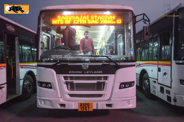 ASTC (Assam State Transport Corporation) Ashok Leyland Jnnurm Buses will be inducted in upcoming South Asian Games 2016 to be held jointly by Guwahati and Shillong. The electronic display route boards were programmed for the games displaying the games destinations. A total of 130 buses will deployed by ASTC for the SAF games 2016. The buses will be tracked by GPS, with its control room at Khanapara, sponsored by Airtel.