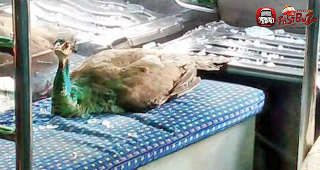 Peacock hit damages window shield of bus
