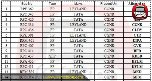 Allocation of Pooled buses at Chengannur depot after Sabarimala Special Operations