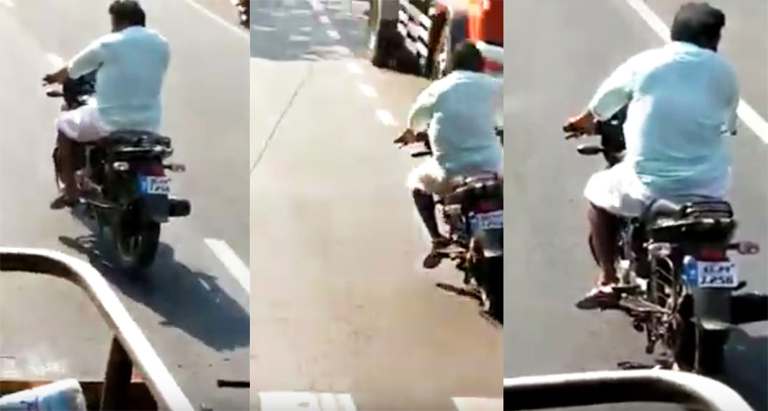 A biker seems that run in front of a KSRTC bus which was plying service with full of passengers. The bike rider blocking the bus from overtaking. Then someone recorded a video of this illegal move and shared on social media. In the video, we can see the biker riding through the middle of the road for blocking the bus. Watch the video..