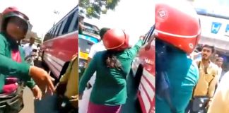 Woman forcefully blocked a Private Bus on Thrissur – Govindapuram Route...