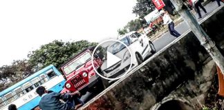 കാറിലെ കുടുംബം രക്ഷപ്പെട്ടത് തലനാരിഴയ്ക്ക്; പേടിപ്പെടുത്തുന്ന ഒരു ദൃശ്യം