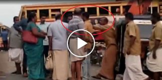 തെന്നി വീണ ബൈക്കുകാരനെ രക്ഷിച്ച് പ്രൈവറ്റ് ബസ് ഡ്രൈവർ – സിസിടിവി ദൃശ്യങ്ങൾ Kerala Private Bus Driver saves two wheeler rider who skidded on a wet road...