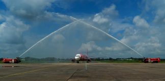 AirAsia Inaugural Flight to Hyderabad with Water Cannon Salute