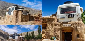 Old Mahindra Marshal used as roof for a house in Ladakh