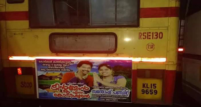 Advertisements of Santhosh Pandit’s new movie on KSRTC Buses