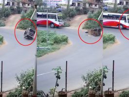 കാറിലെ കുടുംബം രക്ഷപ്പെട്ടത് തലനാരിഴയ്ക്ക്; പേടിപ്പെടുത്തുന്ന ഒരു ദൃശ്യം