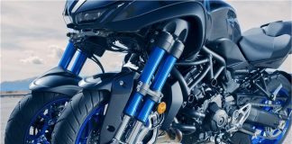 A motorcycle with three wheels and yet it can lean!