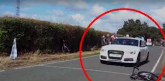 Frightening moment that man drives Audi into racing cyclists after disagreement...