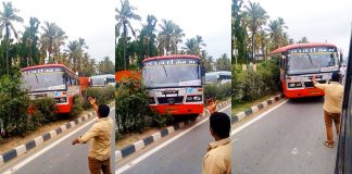 കോട്ടയത്ത് നടുറോഡിൽ പ്രൈവറ്റ് ബസ് ജീവനക്കാരുടെ ഗുണ്ടാവിളയാട്ടം – വീഡിയോ