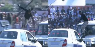 Watch CISF guard JUMP from a moving Mahindra Bolero into a...