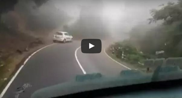 കാറിലെ കുടുംബം രക്ഷപ്പെട്ടത് തലനാരിഴയ്ക്ക്; പേടിപ്പെടുത്തുന്ന ഒരു ദൃശ്യം