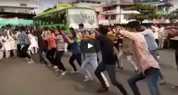 കോട്ടയത്ത് നടുറോഡിൽ പ്രൈവറ്റ് ബസ് ജീവനക്കാരുടെ ഗുണ്ടാവിളയാട്ടം – വീഡിയോ