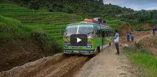 ചെളിയിൽ പൂണ്ടുപോയ ടാറ്റ ബസ്; പിന്നെയൊരു പോരാട്ടമായിരുന്നു കണ്ടത് – വീഡിയോ