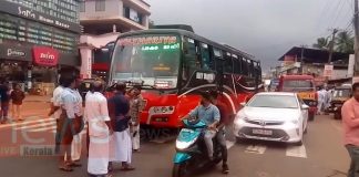 കോട്ടയത്ത് നടുറോഡിൽ പ്രൈവറ്റ് ബസ് ജീവനക്കാരുടെ ഗുണ്ടാവിളയാട്ടം – വീഡിയോ