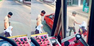 Kerala Private Bus Conductor Helps School Students to Cross the Road...