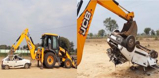 ജെസിബി കൊണ്ട് ഒരു മാരുതി 800 കാറിനെ പപ്പടമാക്കുന്ന കാഴ്ച – വീഡിയോ