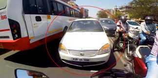 Angry KTM Duke rider blocks Tata Indigo coming from the wrong...