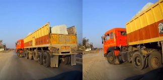 Kerala Loaded truck moving on the wrong side of the road...