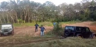 Mahindra Thar rescues a Jeep Wrangler in off-roading