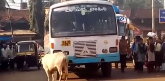 ബെംഗളൂരുവിൽ BMTC ബസ്സിനു പണികൊടുത്ത് ഒരു പശു – വീഡിയോ