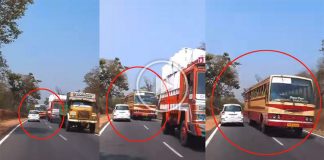കാറിലെ കുടുംബം രക്ഷപ്പെട്ടത് തലനാരിഴയ്ക്ക്; പേടിപ്പെടുത്തുന്ന ഒരു ദൃശ്യം