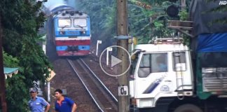 Vehicles Crossing Tracks In Front Of Train; Video…