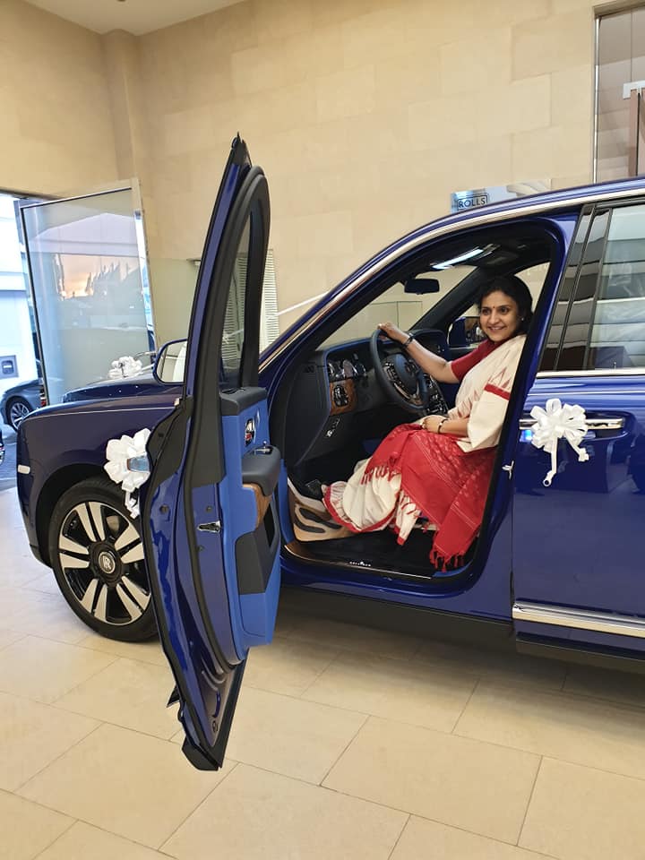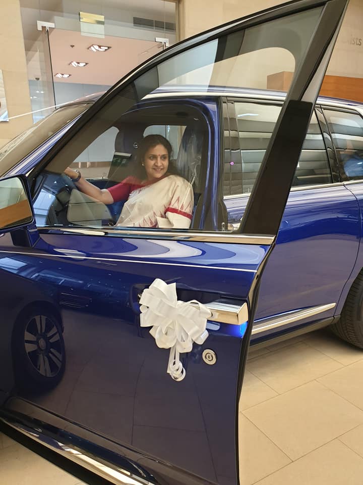 She was gifted the Cullinan SUV by her husband on the occasion of their 25th anniversary. They booked the vehicle in July and became the first Indians to book the latest vehicle from Rolls Royce. The couple recently experienced the Rolls Royce Cullinan at an official event hosted by Rolls Royce Dubai. They were supposed to get the vehicle on 12th December 2018, which is their anniversary date but the delivery got delayed somehow.