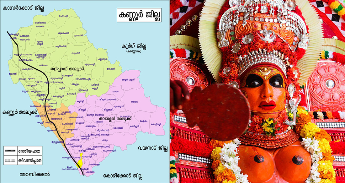 സാംസ്കാരിക സവിശേഷതകൾ : തെയ്യങ്ങളുടെ നാടായാണ് കണ്ണൂർ അറിയപ്പെടുന്നത്. “ദൈവം” ലോപിച്ച് ഉണ്ടായതാണ് “തെയ്യം”. പഴയ കാലത്തെ വീരന്മാരും പോരാളികളും ദേവതകളും ഒക്കെ അവരുടെ കാലശേഷവും നാട്ടുകാരുടെ മനസ്സിൽ കഥകളിലൂടെയും പാട്ടുകളിലൂടെയും നിലനിന്നു. ക്രമേണ അവർ തെയ്യങ്ങളായി മാറി. അവരുടെ ഓർമ്മപ്പെടുത്തലുമായി ഇന്നും ആണ്ടു തോറും തെയ്യങ്ങൾ കെട്ടിയാടപ്പെടുന്നു. തെയ്യങ്ങൾ ഗ്രാമീണരുടെ പ്രത്യക്ഷ ദൈവങ്ങൾ ആണ്. ഓരോ പ്രദേശങ്ങളിലും വിവിധ പേരുകളിലുള്ള തെയ്യങ്ങൾ കെട്ടിയാടപ്പെടുന്നുണ്ട്. മുത്തപ്പൻ , വിഷ്ണുമൂർത്തി, കതിവനൂർ വീരൻ, പൊട്ടൻ, ഗുളികൻ, വയനാട്ട്കുലവൻ, മുച്ചിലോട്ട് ഭഗവതി എന്നിങ്ങനെ ധാരാളം മൂർത്തികൾ ഉണ്ട്.