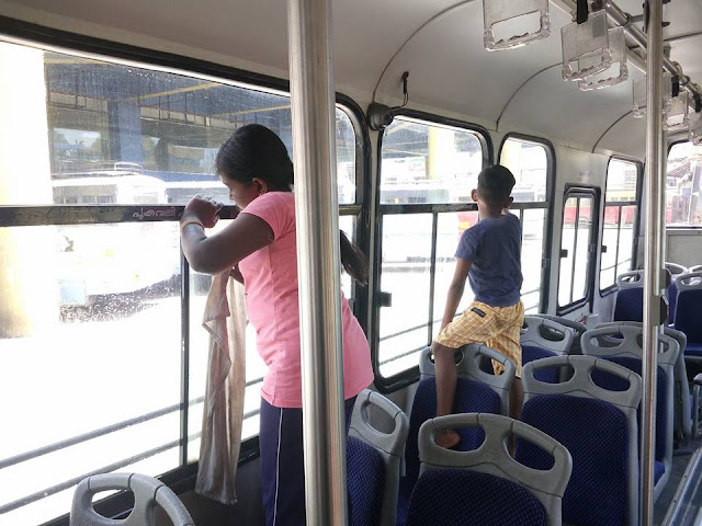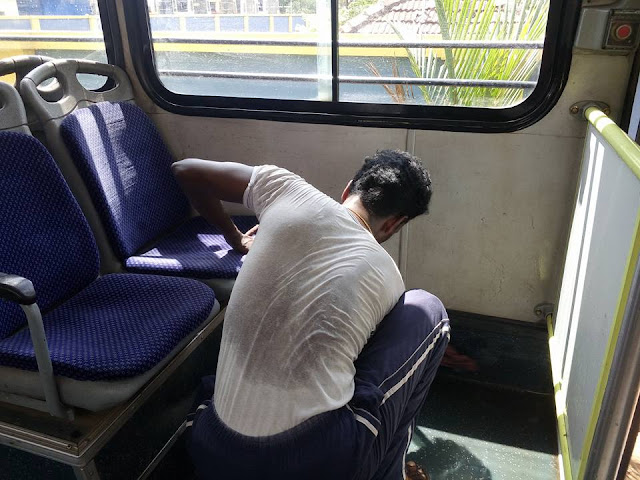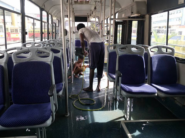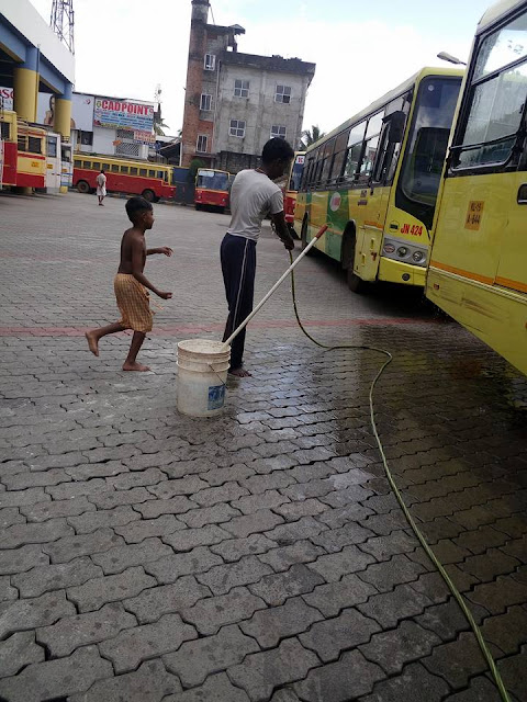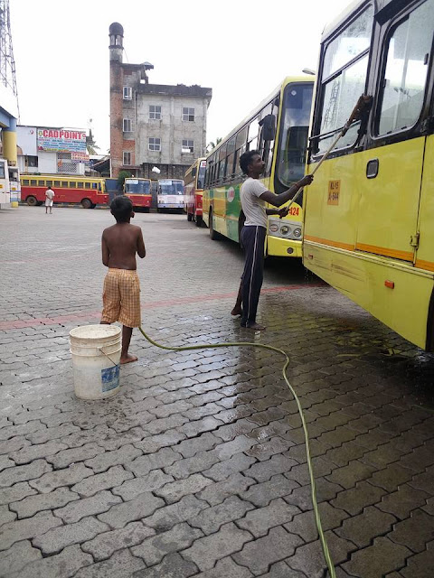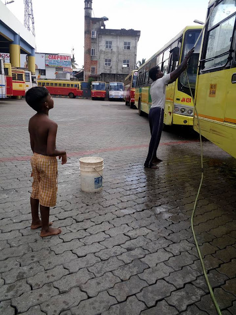 KSRTC Driver Santhosh Kuttans and his children cleaning buses on Harthal day
