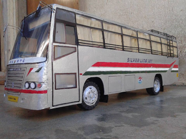 Vishnu N Krishna native of Perumbavoor is busy with making models of KSRTC Buses nowadays. Vishnu is very much passionate about all types of vehicles from his childhood.