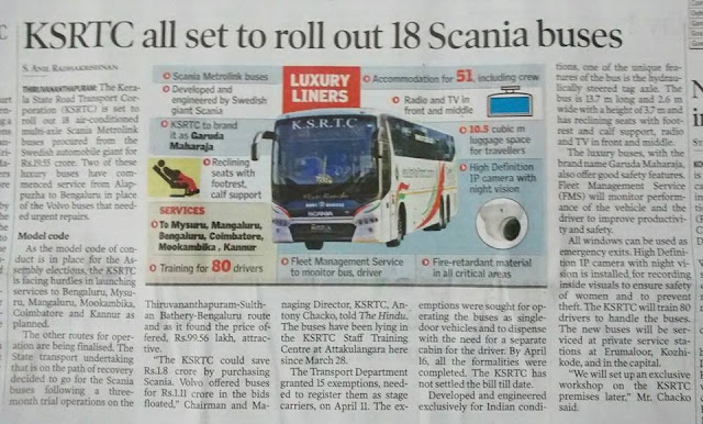 The Kerala State Road Transport Corporation is set to roll our 18 scania buses. Two of these luxury buses have commenced service from Alappuzha to Bengaluru in place of the Super Deluxe Buses.