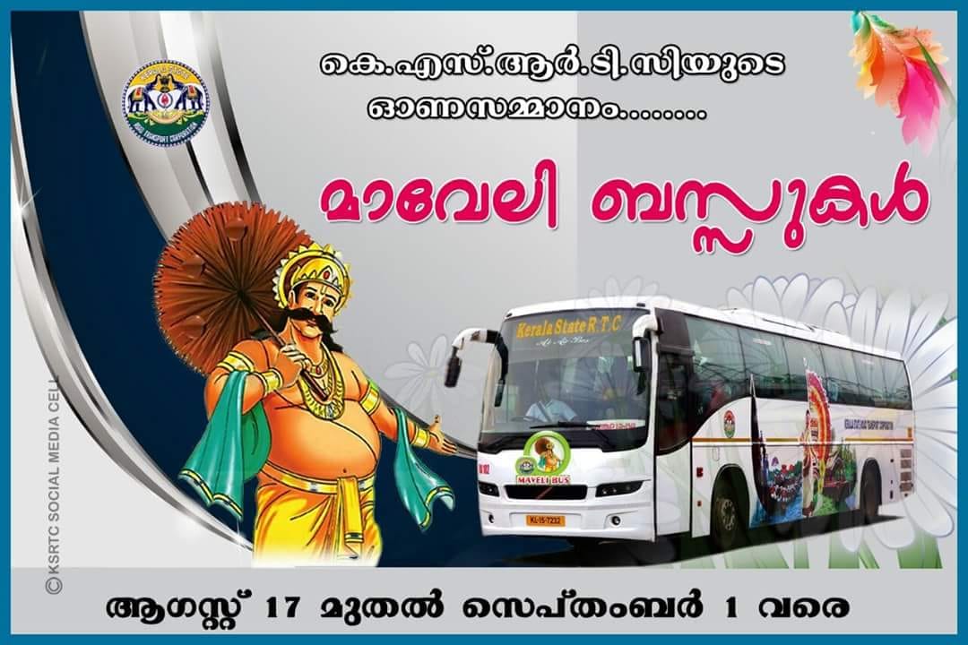 KSRTC will conduct Maveli Bus Service for the outstation Keralites to reach Kerala during Onam season. The service will concentrate on places like Coimbatore, Bangalore, Mysore and Chennai. The charge of service will be kept in the medium range.