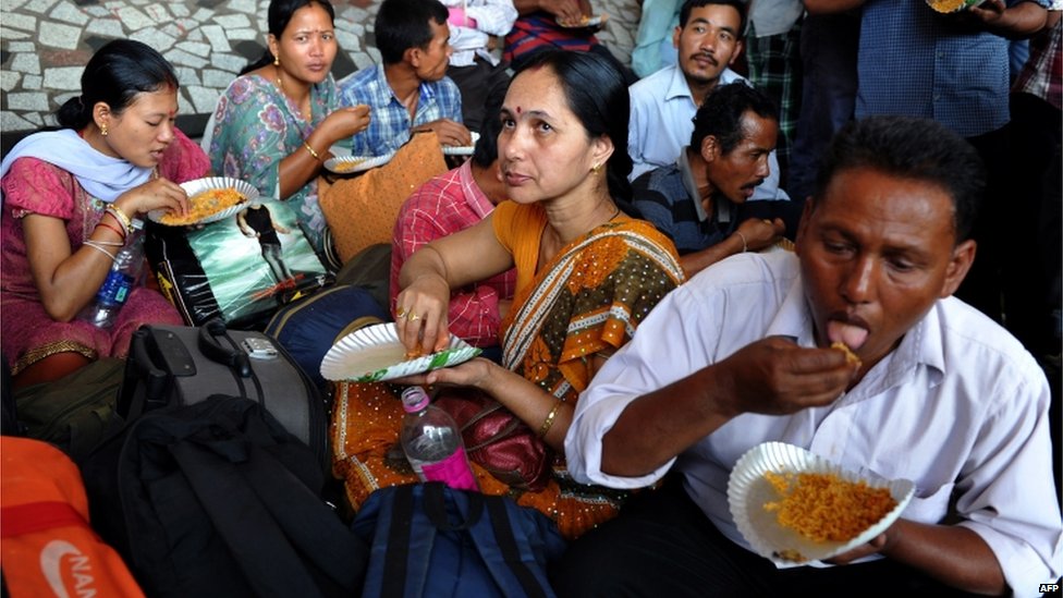The video itself shows three people sitting around crates of packaged food that is distributed to Railway passengers. One of the men is gathering what looks like rice which has dropped out of a casserole and is stuffing it into the foil packaging.