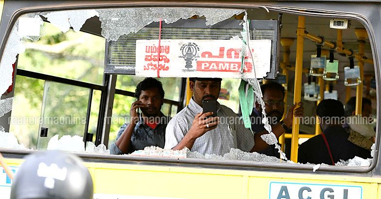 Addressing the media on the violence, Kerala Minister EP Jayarajan said,” 10 KSRTC buses were damaged.”