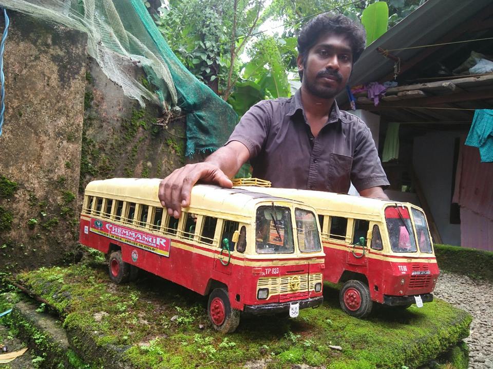 Shyam Kumar native of Kottayam is busy with making models of KSRTC Buses nowadays. Shyam is very much passionate about KSRTC buses from his childhood.