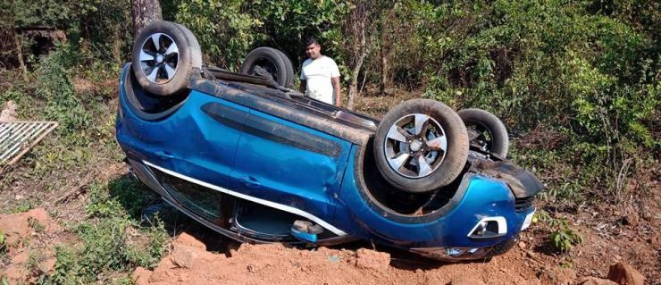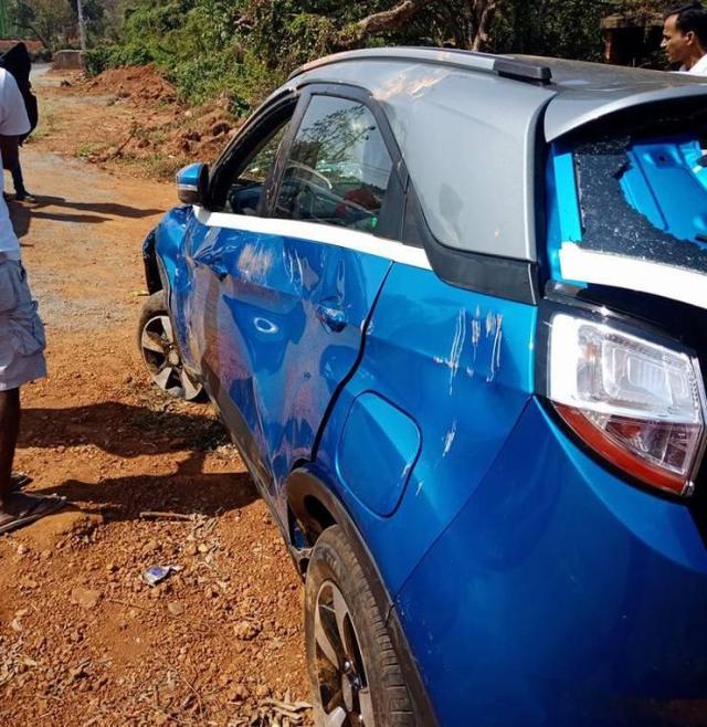 During the sharp swerve to the left, the front-left tyre that went off the road burst. And even as Mr. Kumar was regaining control of the car, a woman appeared suddenly on the road, causing him to steer off the road, this time to the right. A roadside ditch caused the Nexon to roll over.
