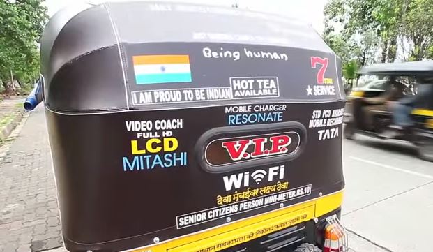 A driver from Mumbai has converted his vehicle into a luxurious auto-rickshaw to provide a higher class of service to his customers. He was seen taking clients for a spin on the city’s streets.