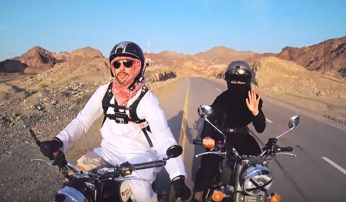 Traveling the Middle East wearing authentic and unique clothes, known as a dishdasha دِشداشَة for the male, and a burqa بُرقع for the female. What could possibly go wrong when two tourists go off on motorcycles for a little stroll around some of the most traditionally religious, protective and culturally minded region in the world?