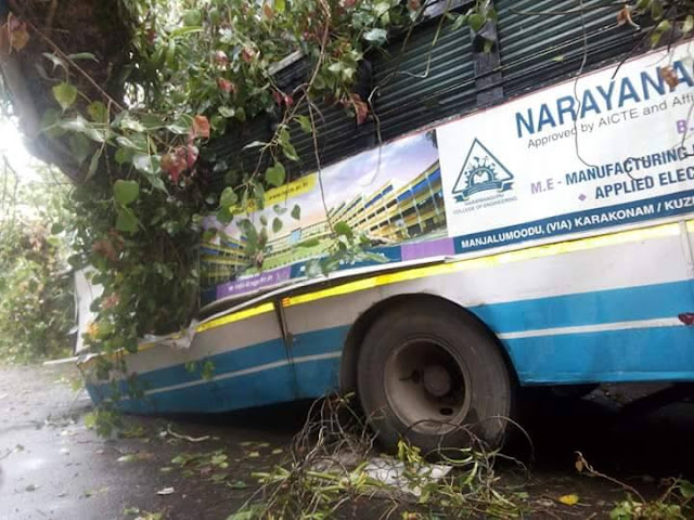 Heavy rain and strong winds caused widespread damage to property in Trivandrum on Friday. A tree fell on a KSRTC bus at Arasumoodu, near Kazhakuttam, that was parked due to breakdown.