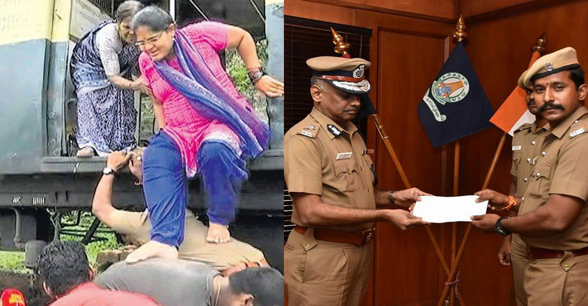 The constables offered their back and shoulders as a ladder for the women to step on and alight. Among them were several elderly women and a pregnant woman. A television journalist Mahesh joined in the rescue effort. Mr. Viswanathan appreciated Dhanasekaran and Manikandan for helping the women.