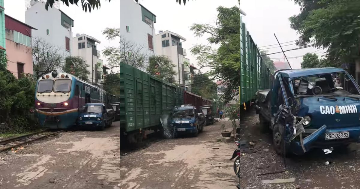 Mind the gap: This is why you shouldn’t park your truck next to a train track. A parked truck in Vietnam has been left utterly destroyed after having a run in with a passing train. The vehicle was left unattended by a railway line in the country’s capital, Hanoi, when a train sped past, knocking it out of the way. The clash completely smashed the right side of the truck and tore the passenger door from its hinges. The incident was captured on video.