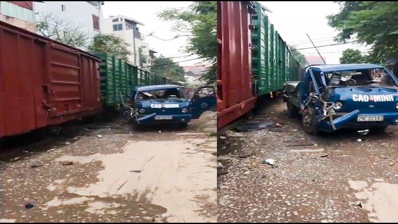 Mind the gap: This is why you shouldn’t park your truck next to a train track. A parked truck in Vietnam has been left utterly destroyed after having a run in with a passing train. The vehicle was left unattended by a railway line in the country’s capital, Hanoi, when a train sped past, knocking it out of the way. The clash completely smashed the right side of the truck and tore the passenger door from its hinges. The incident was captured on video.